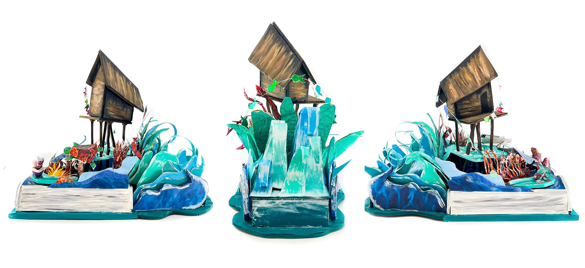 Based on the unique stilt houses of the Sama-Bajau Sea Tribe in the coastal regions of Indonesia, this float ideation is part of a bigger collaborative class project, named "The International Celebration of Conservation". Each team created a float based on a different region of the world, raising awareness for the endangered animals and environments in that area.