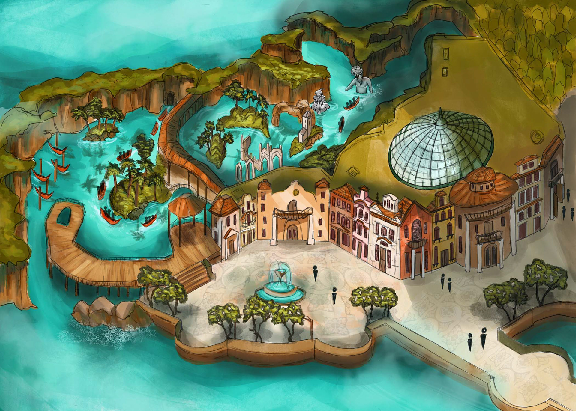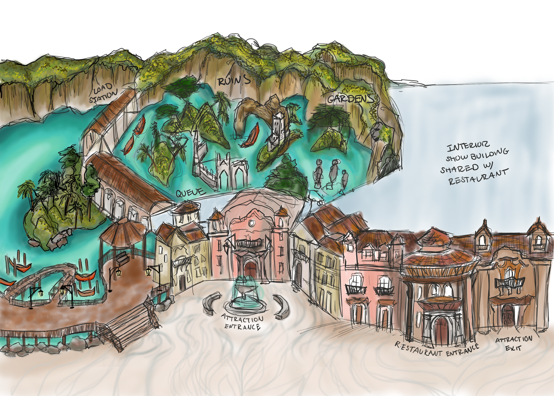 This piece is part of a collaborative class project, where all students collectively created pieces of a theme park land based on The Legends of Nuum, a student-made series of short stories.